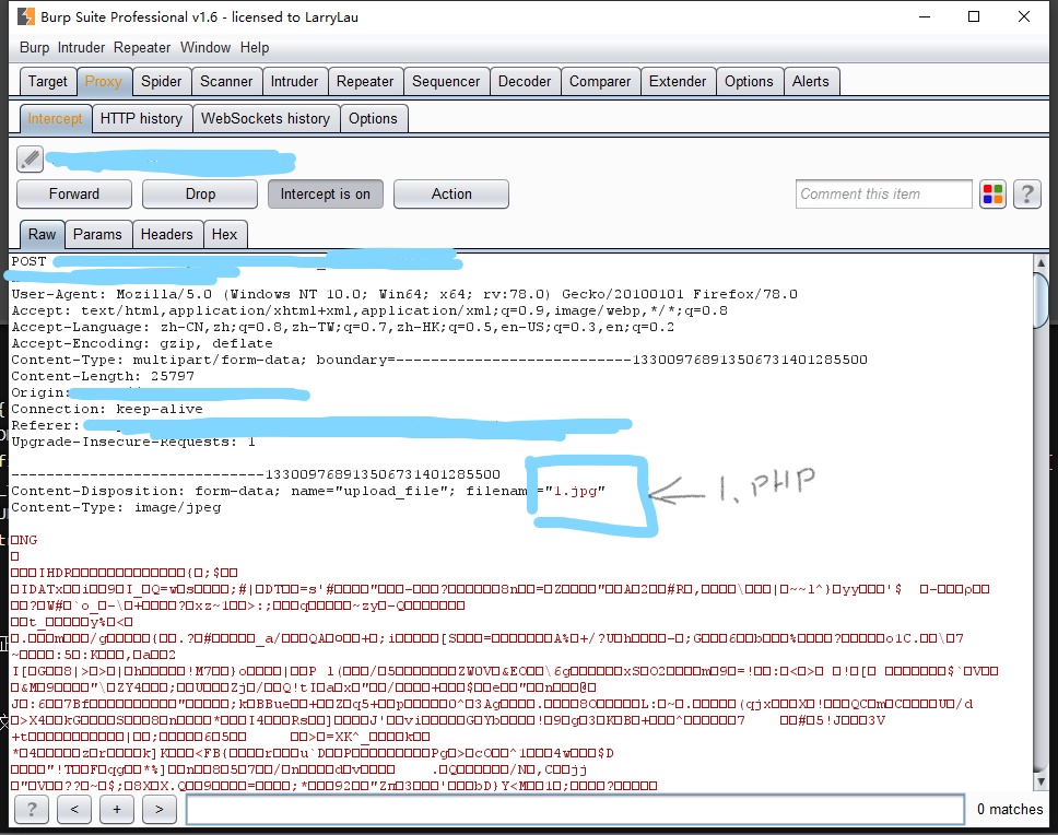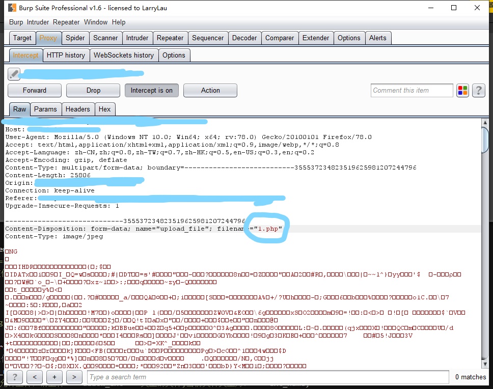 通过查看源代码发现该题目为前端校验,只需要抓包后更改文件后缀即可。
