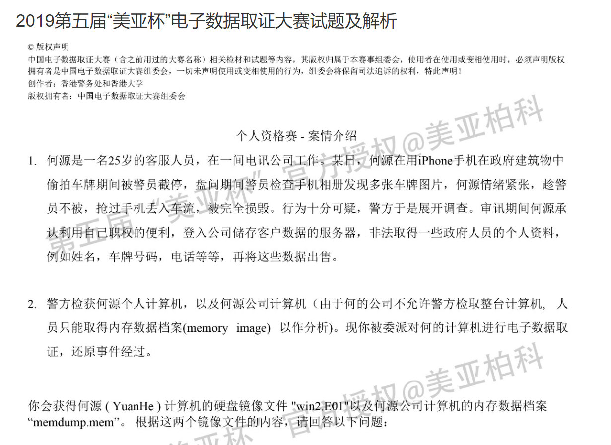上一篇 编译原理实验——简单函数绘图语言的解释器 编译原理布置了一个巨复杂的作业,完成一个简单函数绘图语言的解释器,秉承某电实验班的开源精神~在此记录一下方便后人。 2020-12-11 作业 C 编译原理 下一篇 2018美亚杯个人赛 由于版权原因,本文涉及的工具、镜像均不提供下载。 案情信息1.林胜(Victor)是一名三十岁的中学教师。一天,他在家中使用计算机期间,收到一封勒索邮件,其中列出他电子邮件用户名和密码,及其他個人资料,並声称他的用户数据已被窃取,计算机已被 2020-11-12 电子取证 电子取证