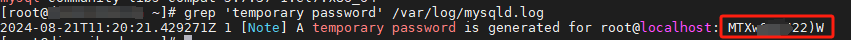 grep 'temporary password' /var/log/mysqld.log
