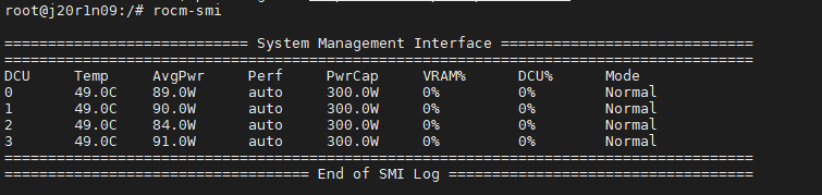 进入容器后使用rocm-smi查询DCU